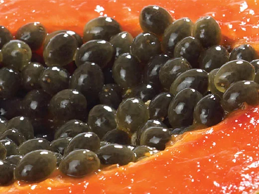 Papaya wird für die Reinigung von Haut genutzt, die von Akne betroffen ist. Ihr Papain-Enzym kann Keratin auflösen ist daher besonders wertvoll.
